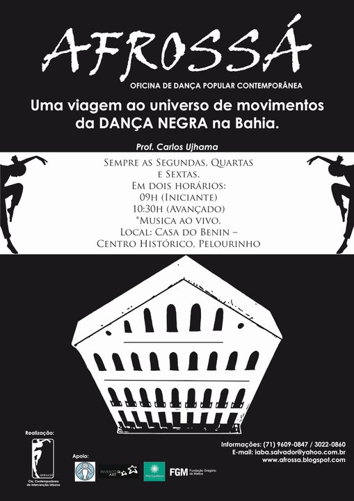Para o inicio deste ano, estamos com uma programação especial. De SEGUNDA a SEXTA, sempre as manhãs, em dois dos melhores endereços da cidade de Salvador. Fiquem atentos aos dias e horários que melhor servem para voce!Na CASA DO BENIN, localizada no Centro Histórico da cidade, as aulas são abertas para todos.
